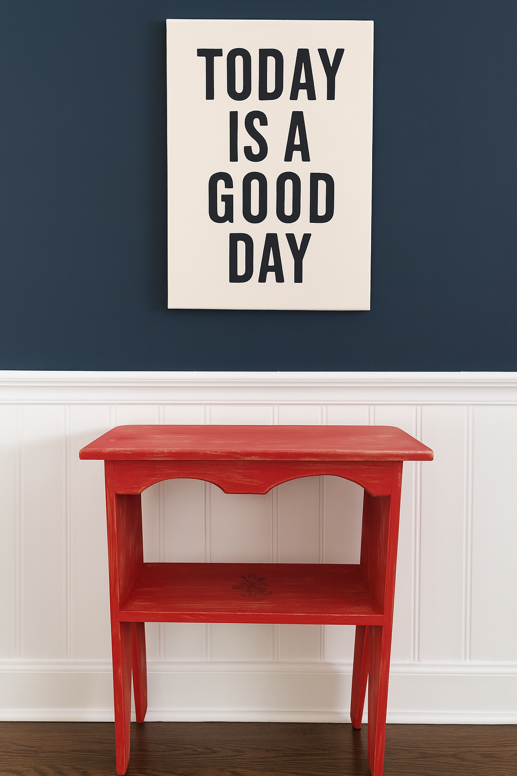 Greet guests with a burst of rustic charm using this barn red entryway table, perfect for foyers, hallways, or as a console in any room.
