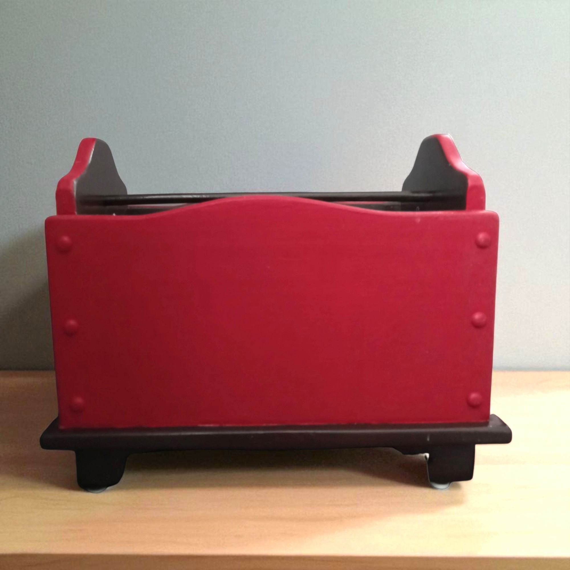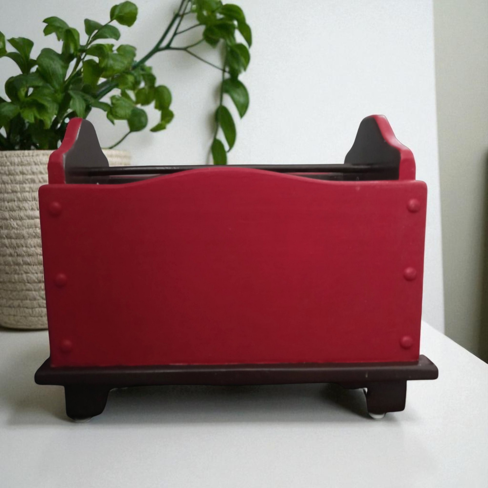 Organize your magazines and books, with this rustic barn red wooden rack.