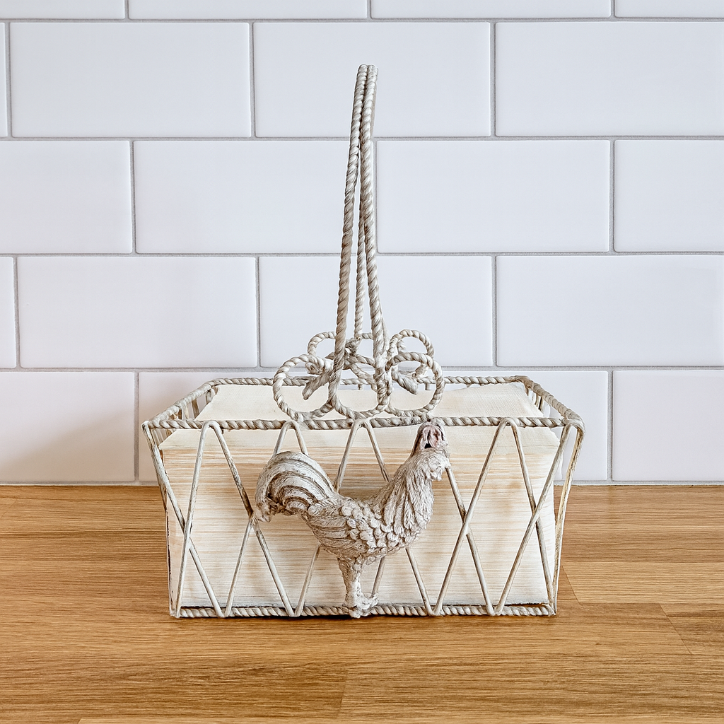 Add authentic farmhouse flair to your home with this versatile chicken wire basket — perfect for organizing or displaying everyday essentials.