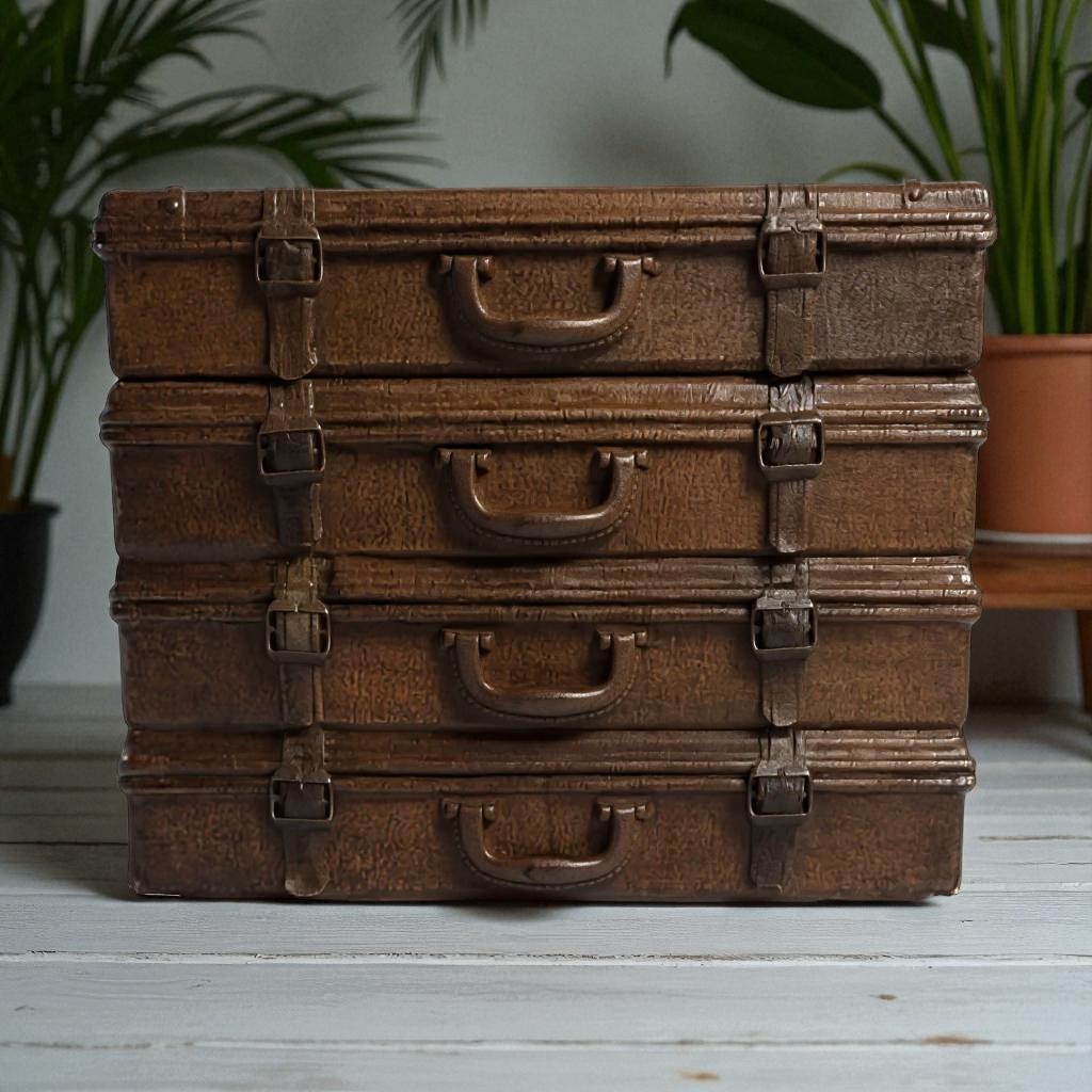 Enhance your home with this vintage brown luggage-style storage unit. Crafted to resemble a classic travel trunk.